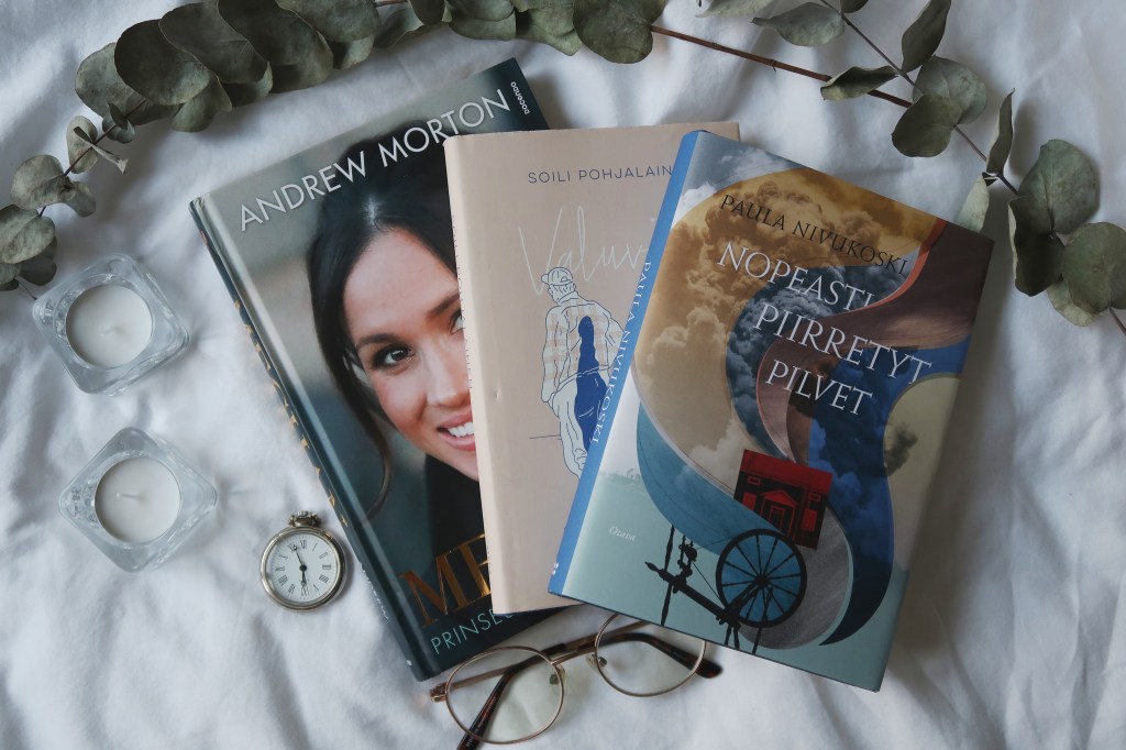 Kuukauden lukutilastoja kaunistavat Sarah Fordin lyhyet kuvakirjat, joiden lukeminen ei tosin ollut mikään maata mullistava kokemus. Nopeasti piirretyt pilvet sai minut puolestaan totaalisesti pauloihinsa ja Aikuisten perhe oli todella kiinnostava nosto tietokirjapuolelta. Valuvika oli mukavan kevyt lukukokemus, kun taas Meghanin elämäkerta vähän raskas. Äänikirjoihin käyttämäni aika on pyöräilykauden alettua vähentynyt roimasti, mutta sain silti urakoitua muutaman kirjan. Kellontekijän tytär oli yksi tämän kevään kirjanostoistani, ja se olikin erinomainen, vaikka olisi kaivannutkin hieman karsimista. (Plus haluaisin vielä keskustella kirjan lopetuksesta jonkun teoksen lukeneen kanssa!) Viimeisen kirjani ensimmäinen puolituntinen oli maailmojani ravisutteleva, mutta loppuosa sellaista keskipaksua neljän tähden muistelua.